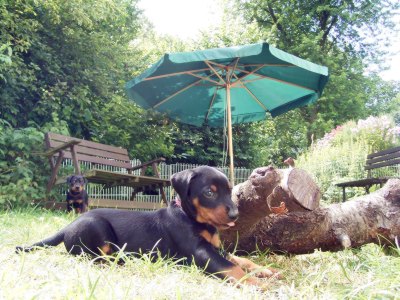 Voll fit! Schlammschlacht unter Mamis Aufsicht. Satt! Mami macht den Abwasch, jetzt haben die Kleinen die Aufsicht. Dann ist Ralaxen angesagt...